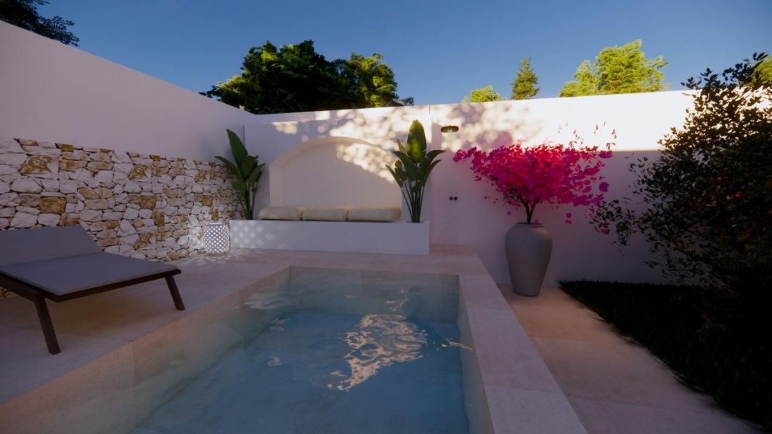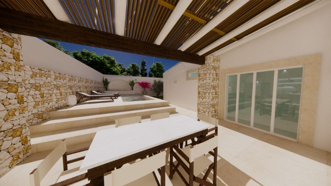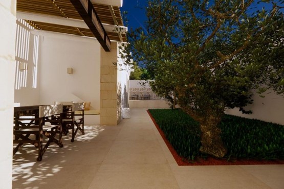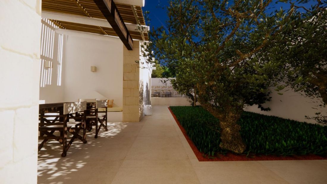 Gli esterni saranno rifiniti con intonaco a calce, mentre il pavimento interno, già selezionato, è il Serenissima 100×100 colore Sabbia, perfettamente armonizzato con l’ambiente.Punti di Forza
