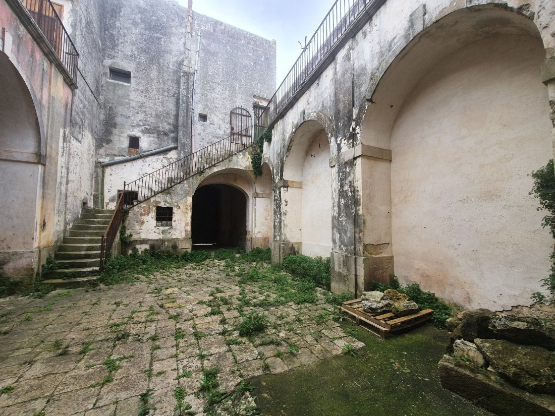 ORTELLE - Nella splendida Piazza San Giorgio intero palazzo risalente al 1760, facente parte di una nota famiglia nobile. L'antica dimora è disposta su due livelli per una superficie coperta di mq 500, tra piano terra e piano primo, oltre a cantine scavate nel tufo, dove ancora oggi sono presenti tutte le attrezzature per la spremitura e la lavorazione dell'uva, Torchio e Parmentu.